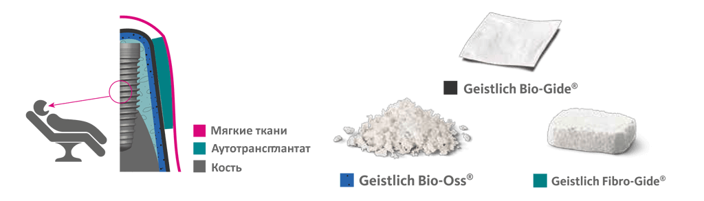 Для установки имплантата важно обеспечить достаточное количество костной ткани. Там, где наблюдается недостаток высоты или ширины кости, с помощью биоматериалов создается новая костная ткань. Материалы из коробки можно использовать как самостоятельно, так и в сочетании с аутокостью.
