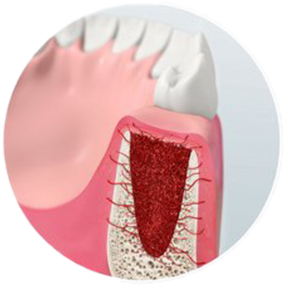 Мембрана создает барьер, который не дает мягким тканям прорасти в область остеопластики.