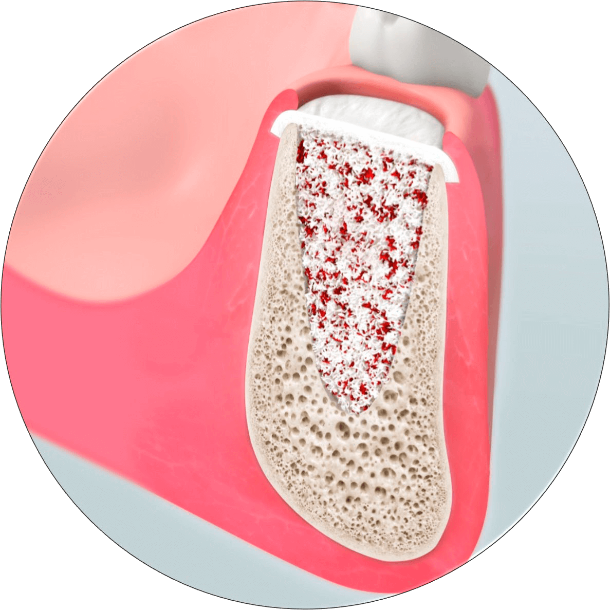 Мембрана создает барьер, который не дает мягким тканям прорасти в область остеопластики.